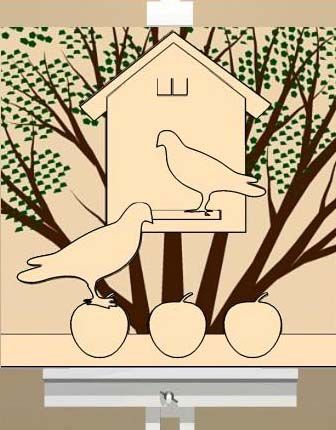 en qué se basa pintar las palomas, las manzanas y la caseta de esos colores?